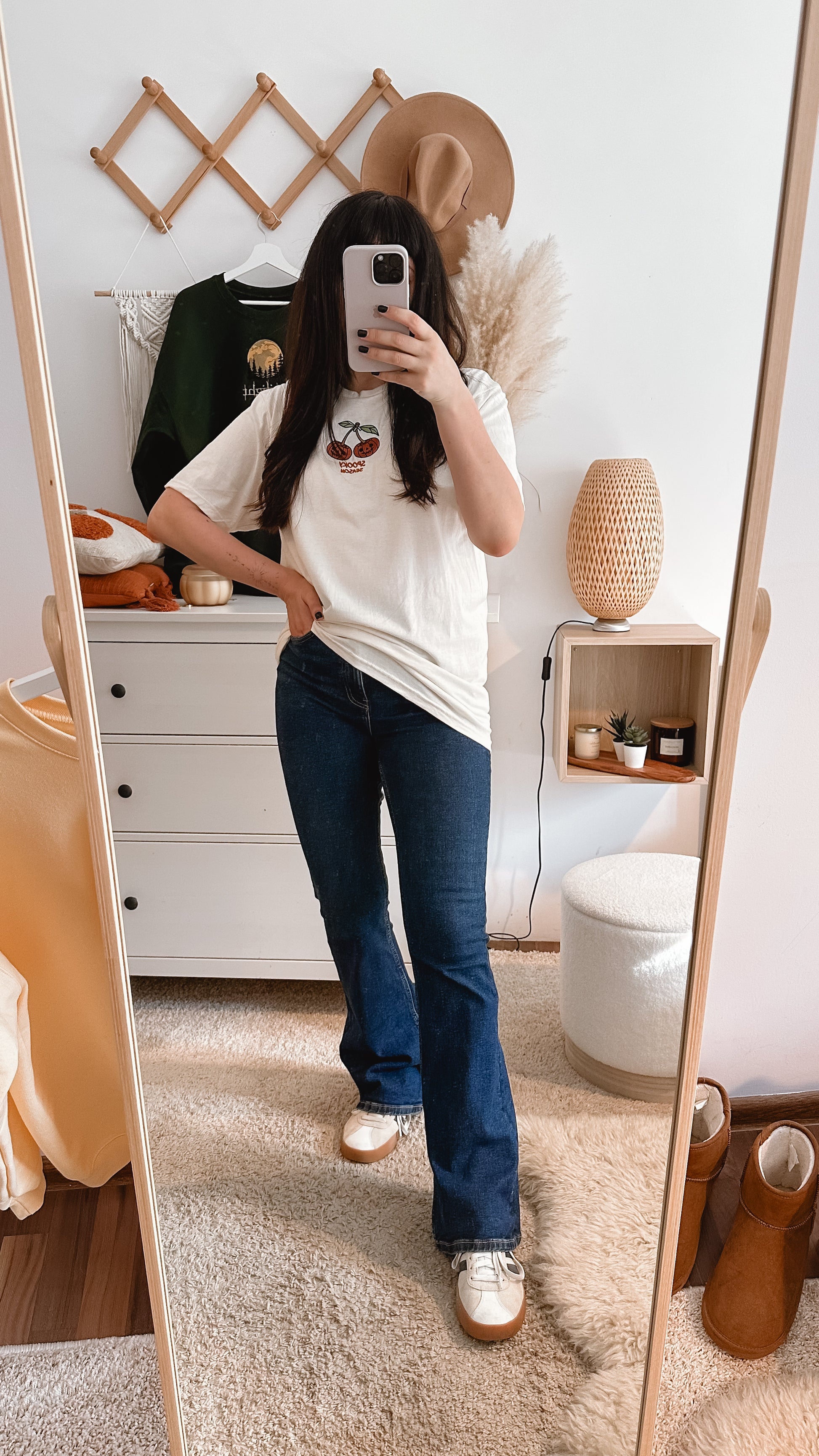 Podwójne przeszycia przy rękawkach i u dołu koszulki